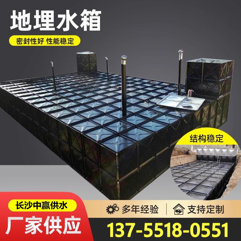 地埋式BDF水箱现场安装方便,度螺丝安装,水箱模板之间采用食品级硅胶条连接fang漏水,此种硅胶条有遇水自动膨胀功能。内部采用拉筋支撑,与水接触的地方完全无焊接点,不产生腐蚀现象,从而延长水箱的使用寿命。